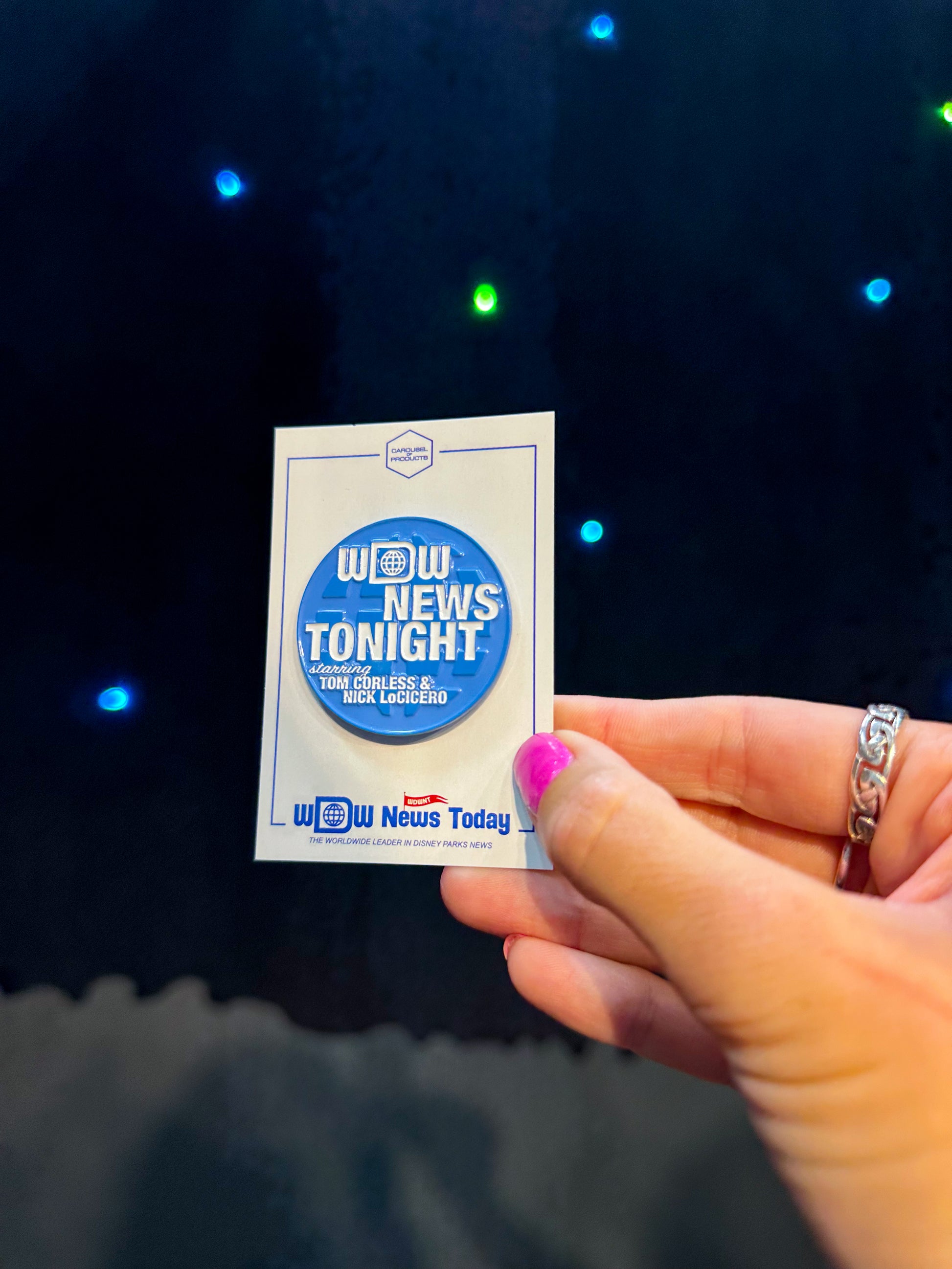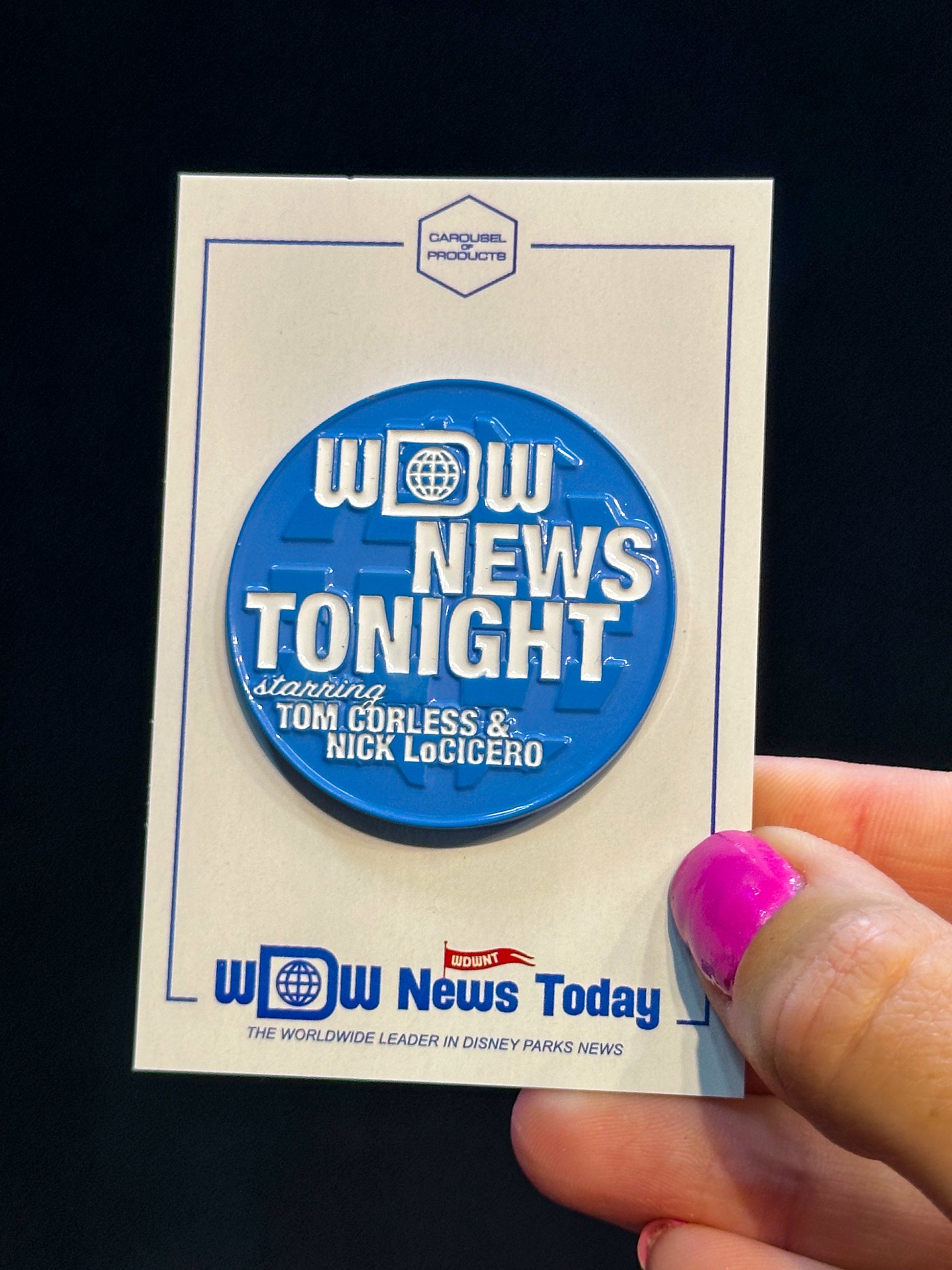 If you're a fan of WDW News Tonight, let everyone know by sporting this logo pin